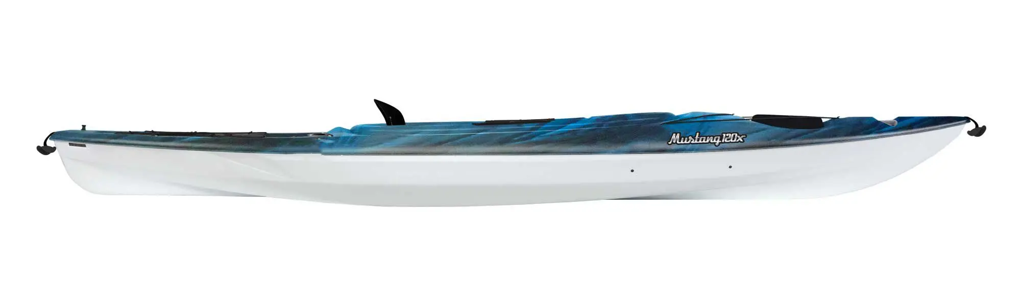 Weighing only 47 lb. the MUSTANG 120X EXO recreational kayak offers great stability. thanks to its double arch and multi-chine hull. Molded footrests. adjustable knee pads and a front storage compartment with bungee cords make this sit-in kayak the ultimate do-it-all. Water sports enthusiasts. the MUSTANG 120X EXO was made for you!ADDITIONAL DETAILS AND FEATURES