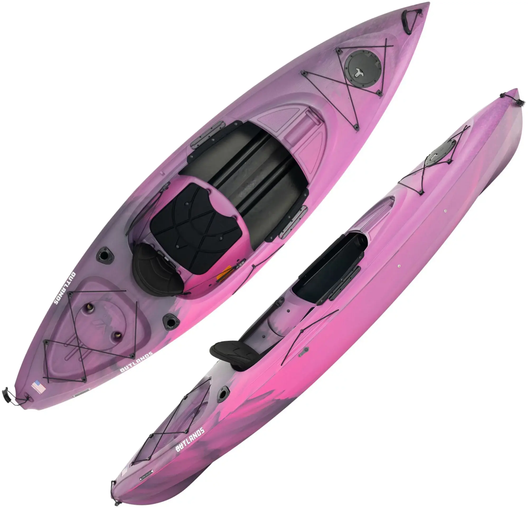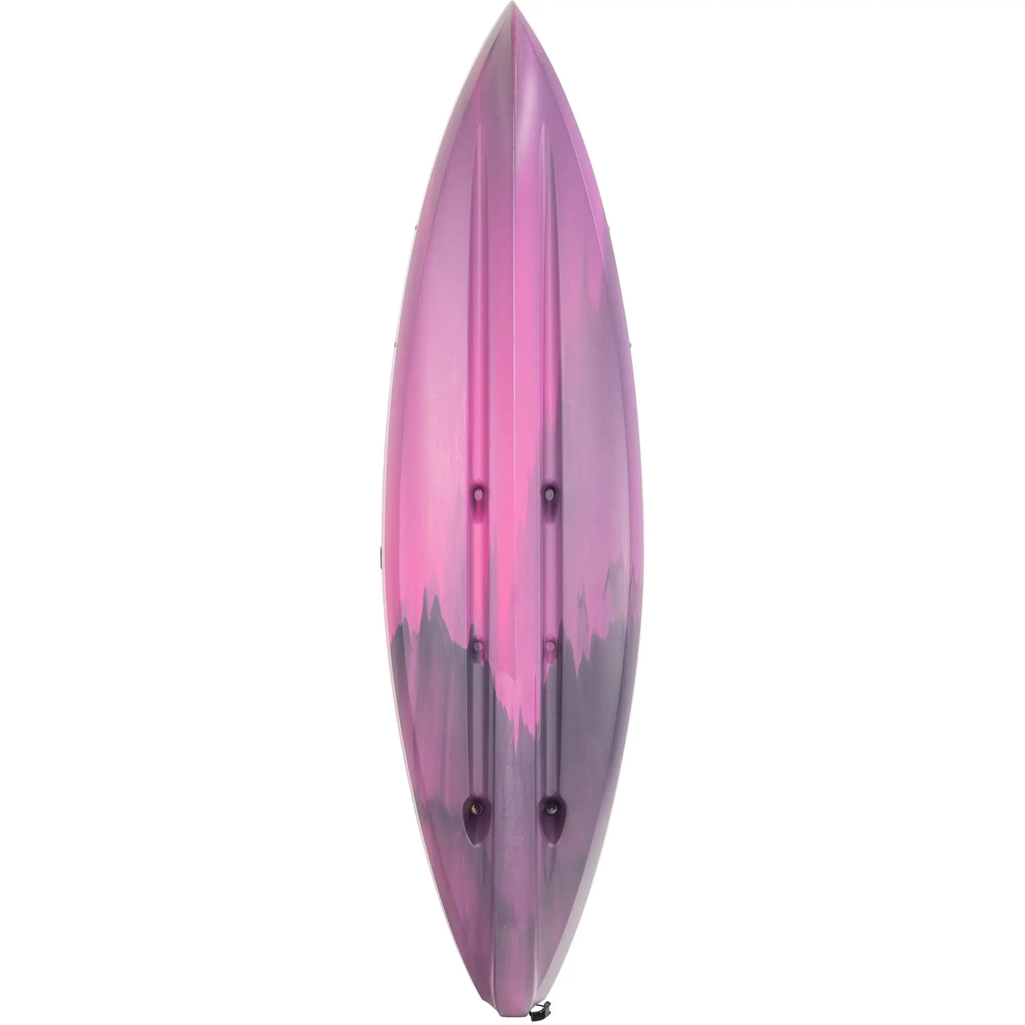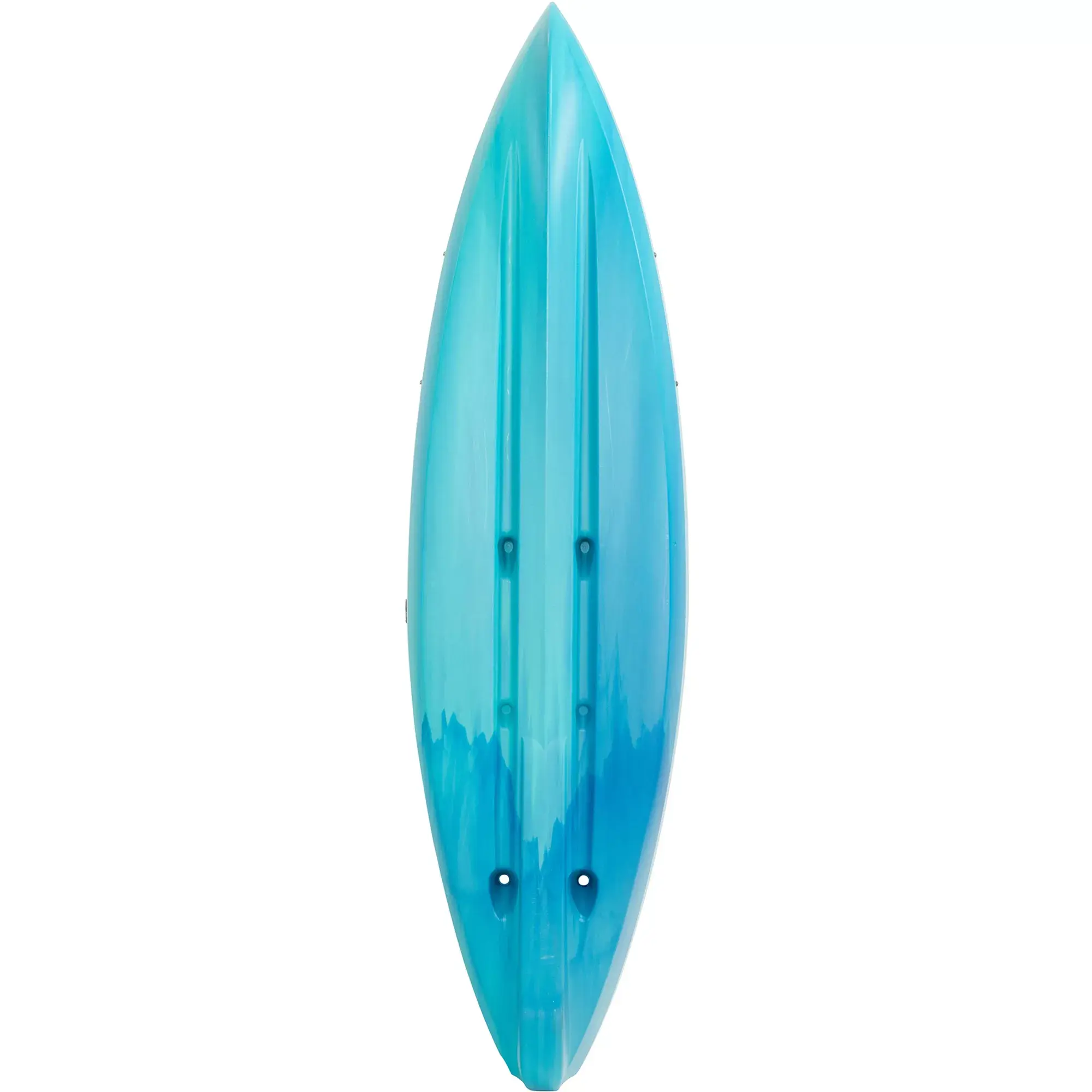This kayak is designed to maximize comfort and convenience for the user. The padded seat is adjustable. allowing for a customized sitting experience. while graduated footwells allow for optimal foot positioning. The cockpit is equipped with knee pads for added comfort. and both bow and stern bungees offer multiple gear storage options. The low-profile side rails are perfect for attaching accessories. and a dry storage hatch ensures that belongings remain secure. The center console features grooves for holding water bottles or phones. and there are dual paddle keepers for easy storage. Additionally. the kayak has two built-in rod holders and a rear well that fits a 5-gallon bucket for effortless storage. The multi-chine hull design ensures excellent stability. and carry handles make transport a breeze.